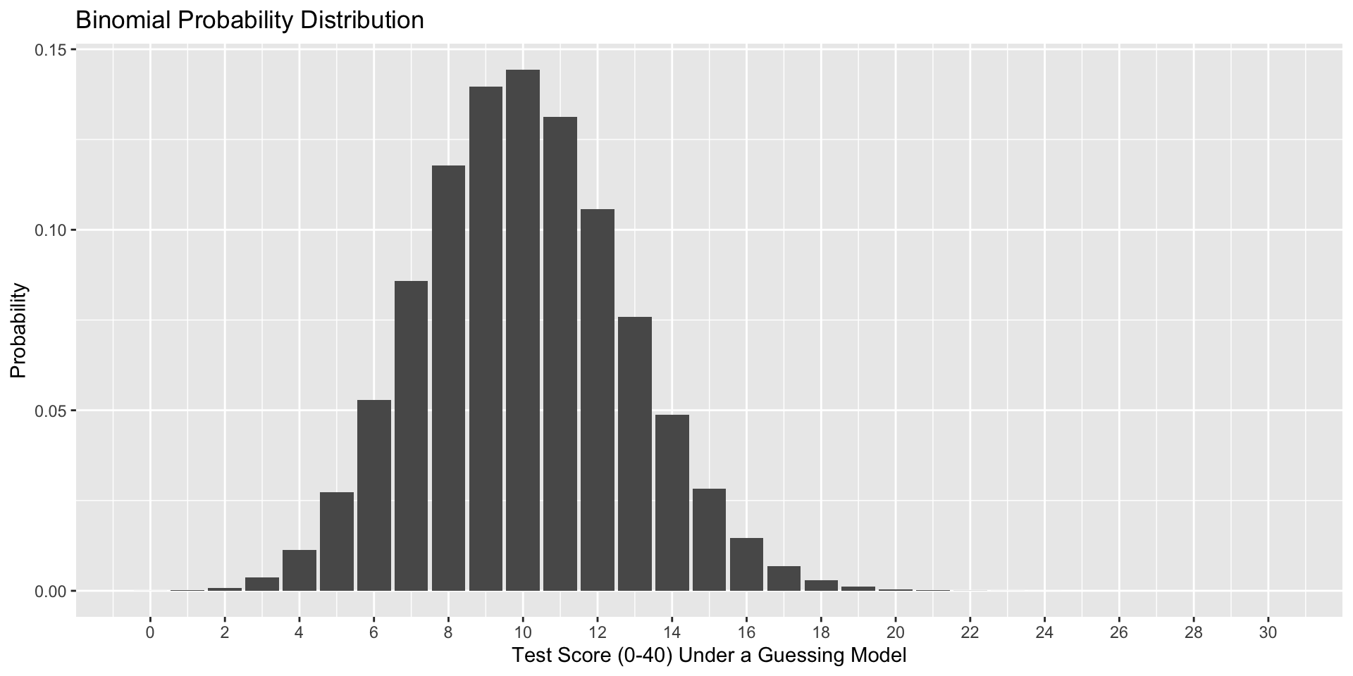 For example, suppose I give a 40-item multiple choice test, with each question having 4 options.