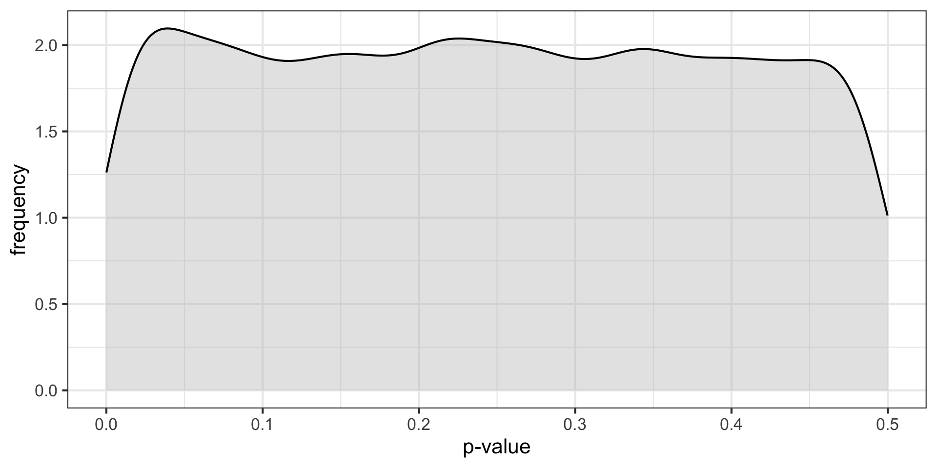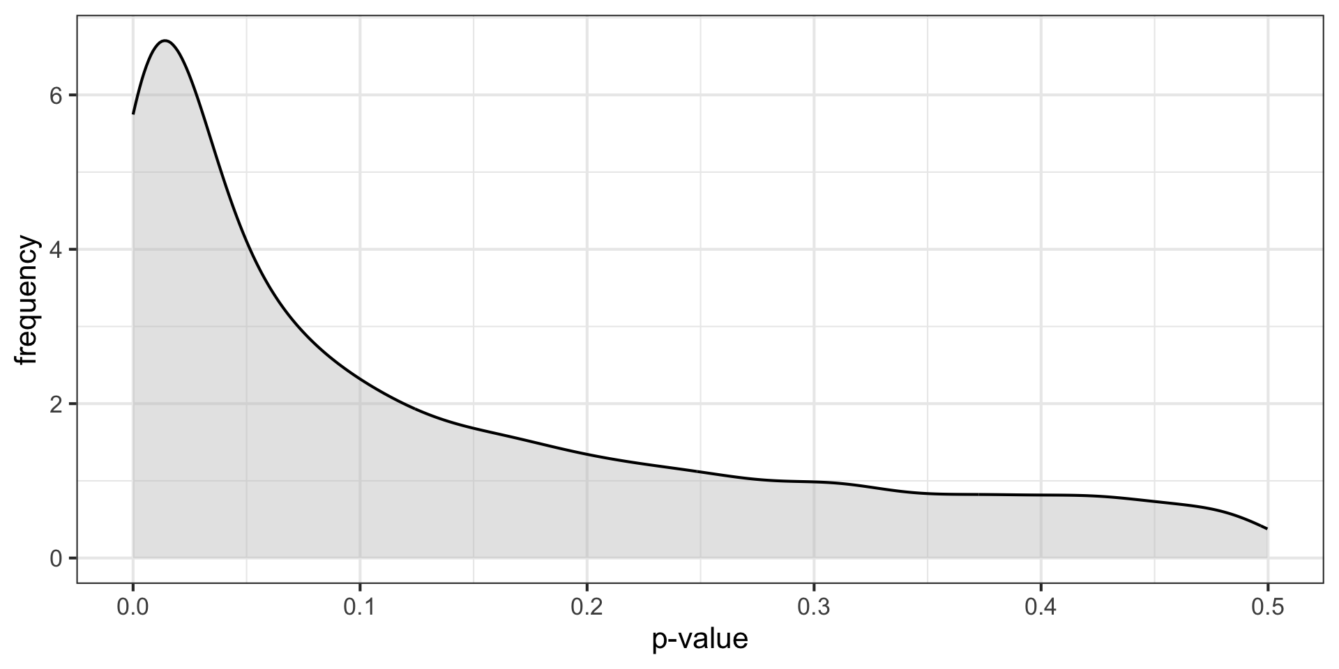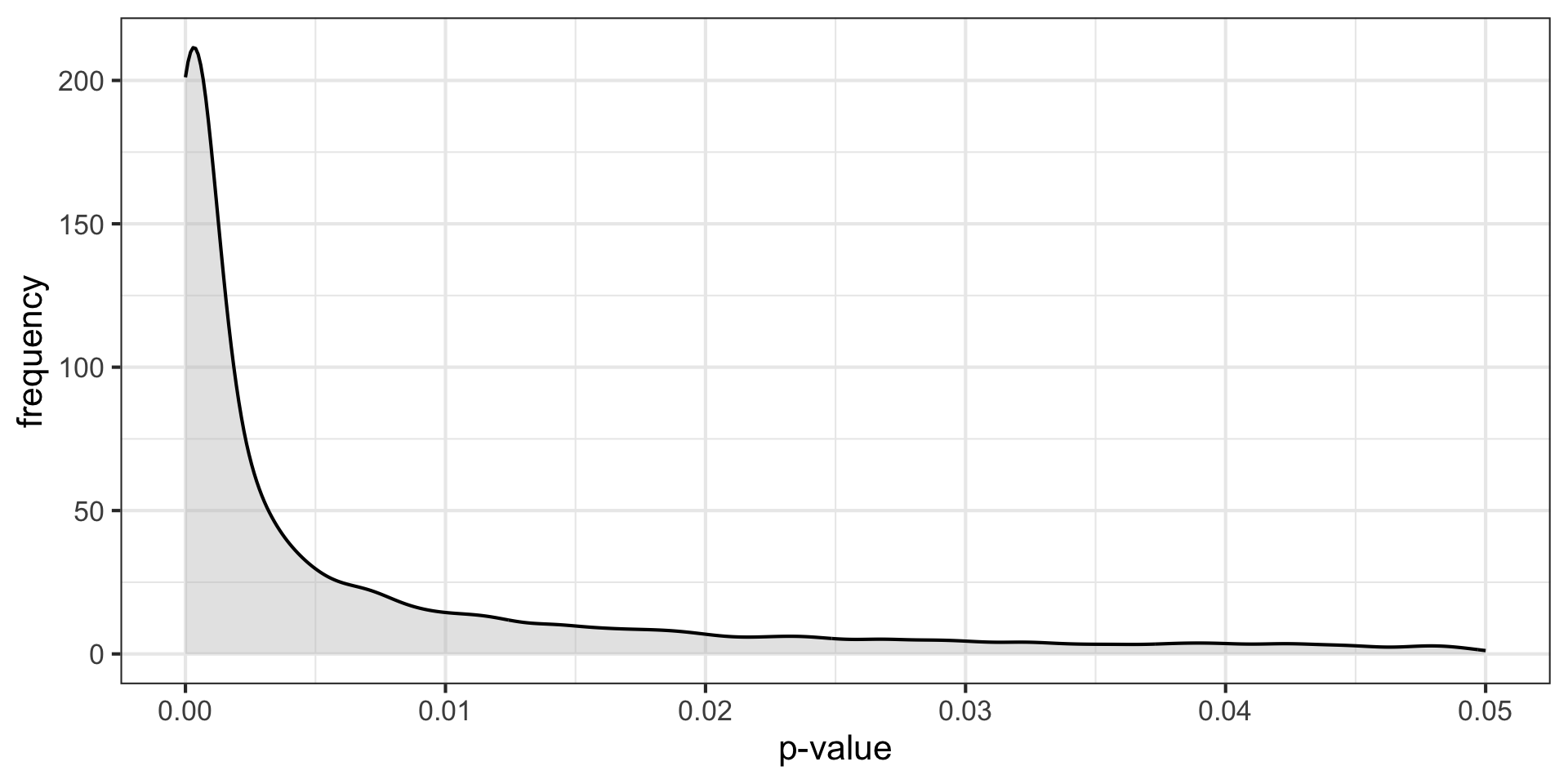 labs(x = "p-value", y = "frequency",