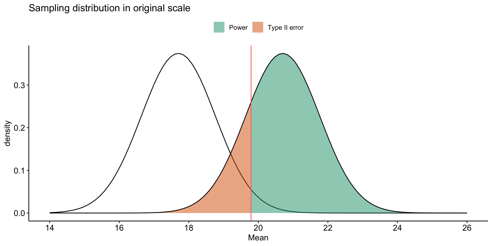 stat_function(aes(fill = "Type II error"),