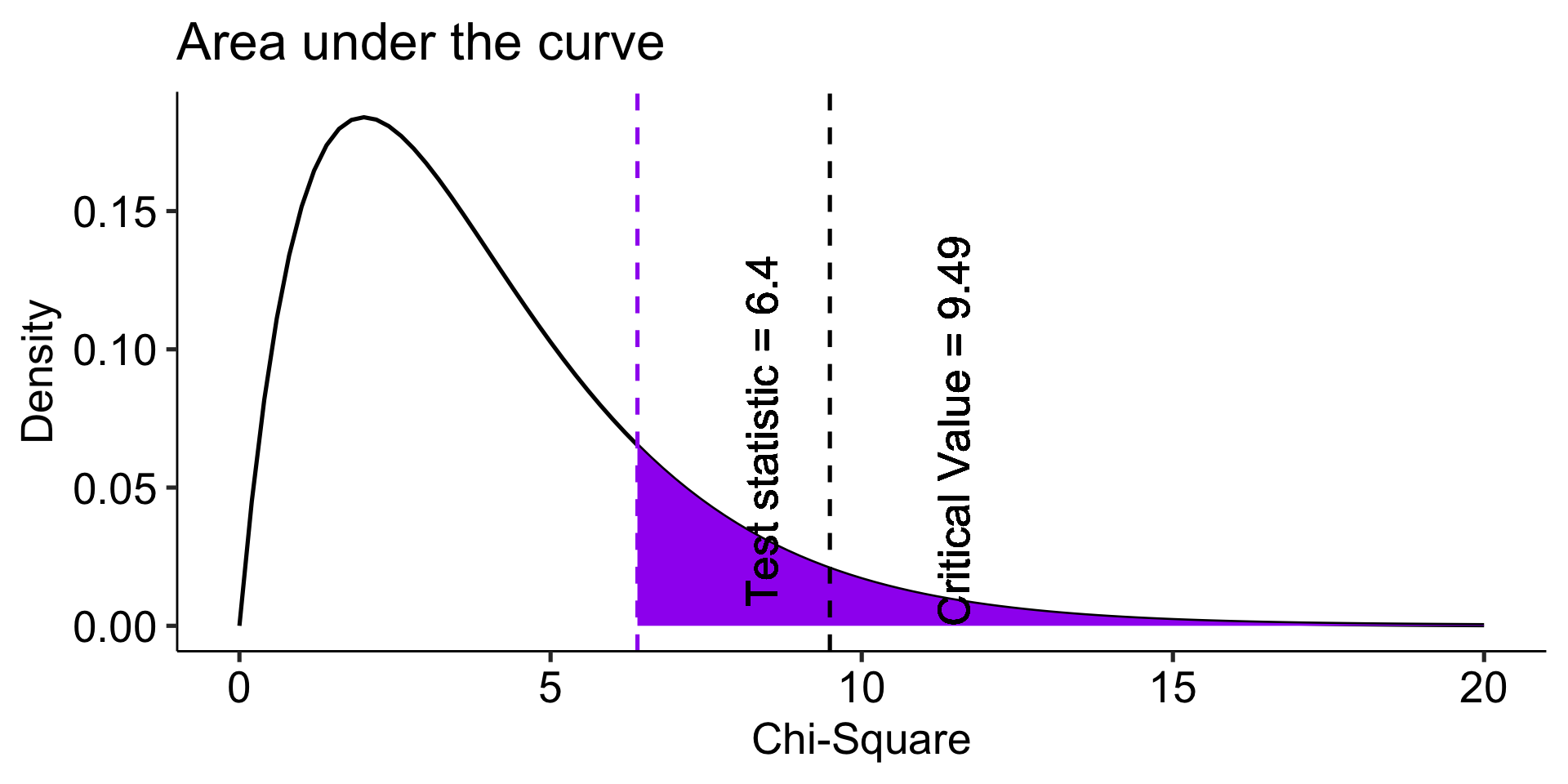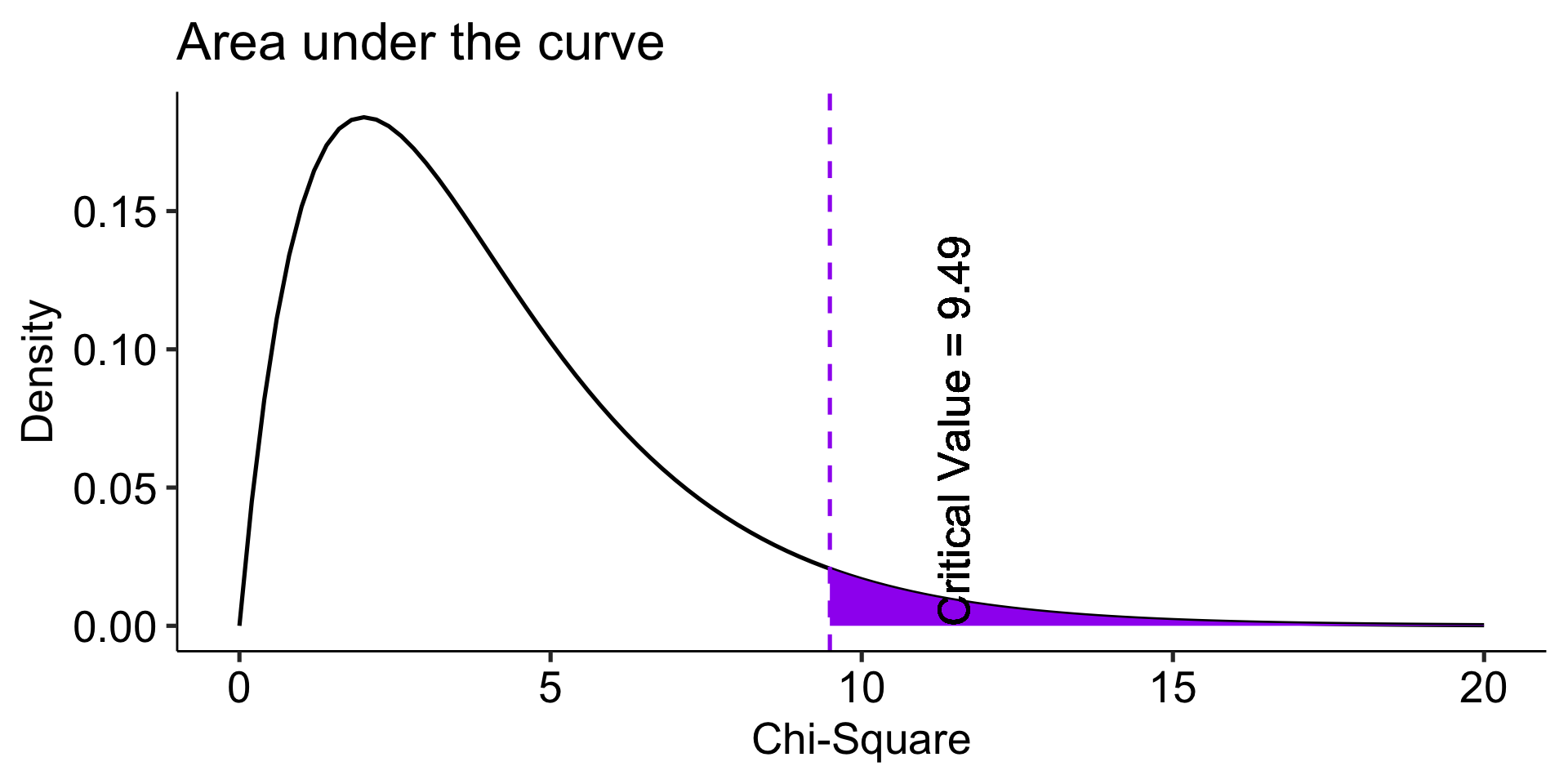 labs(x = "Chi-Square", y = "Density", title = "Area under the curve") +