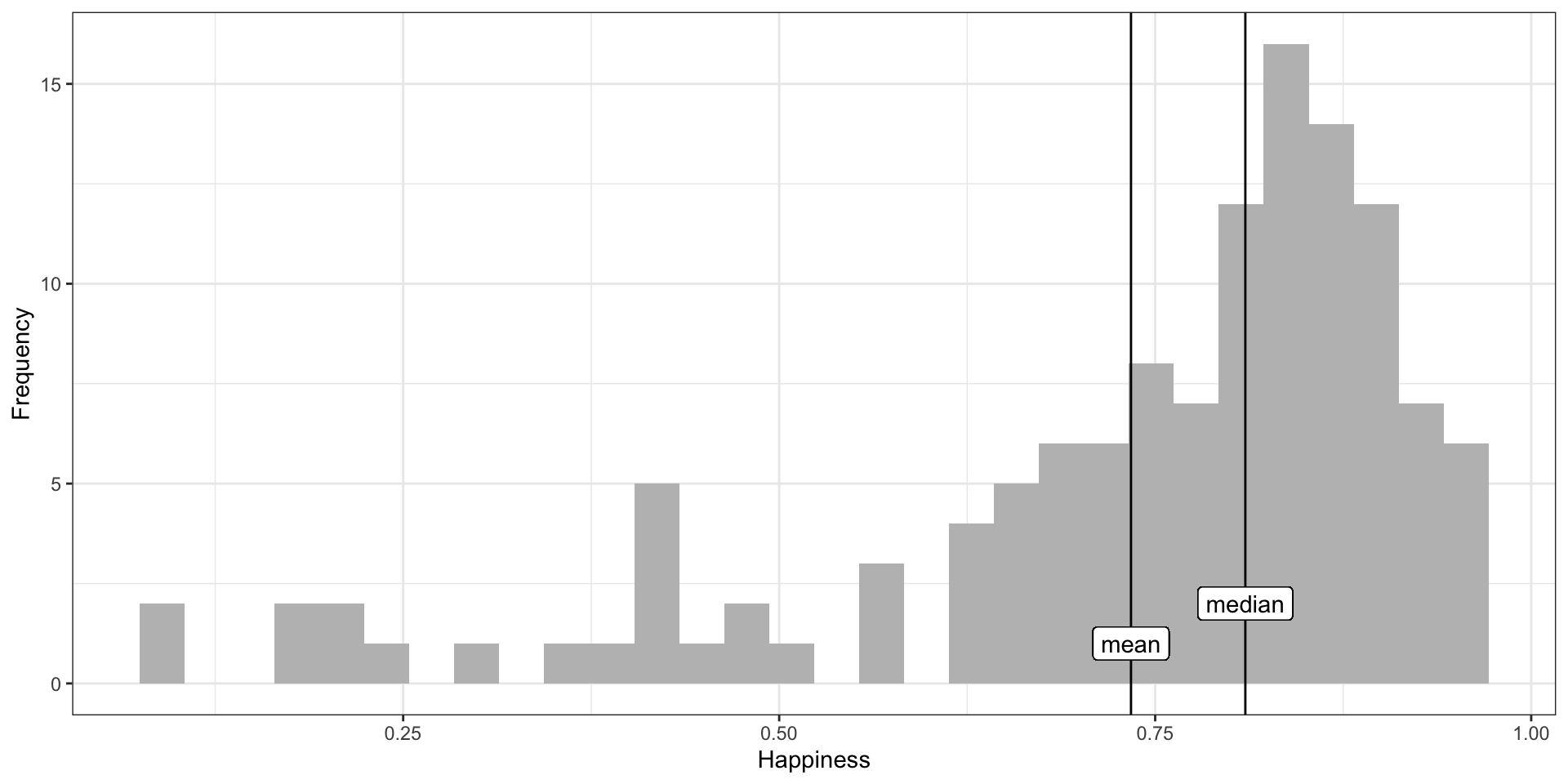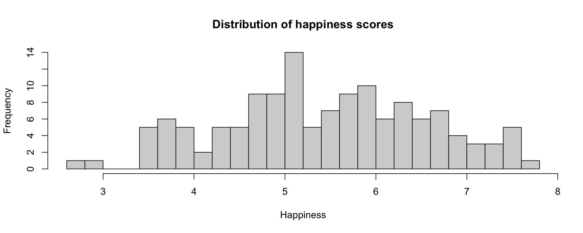 Examples today are based on data from the 2015 World Happiness Report, which is an annual survey part of the Gallup World Poll.