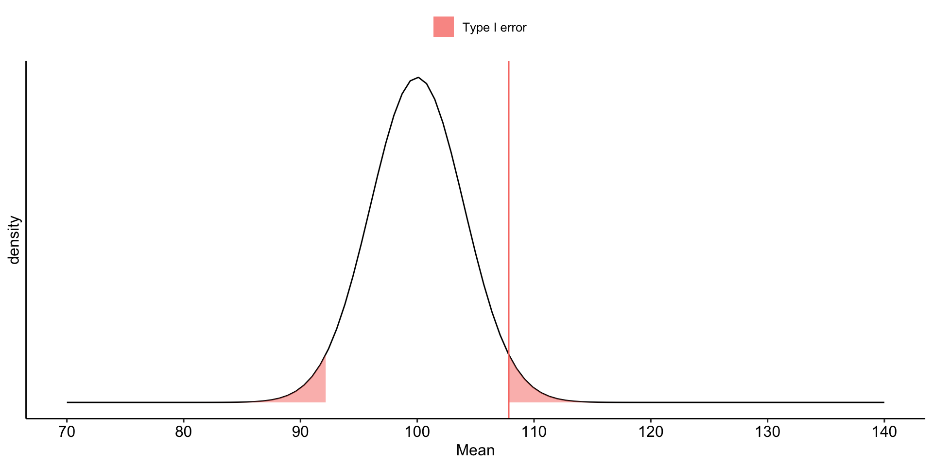 stat_function(aes(fill = "Type I error"), fun = function(x) dnorm(x, mean = mu, sd = sem),