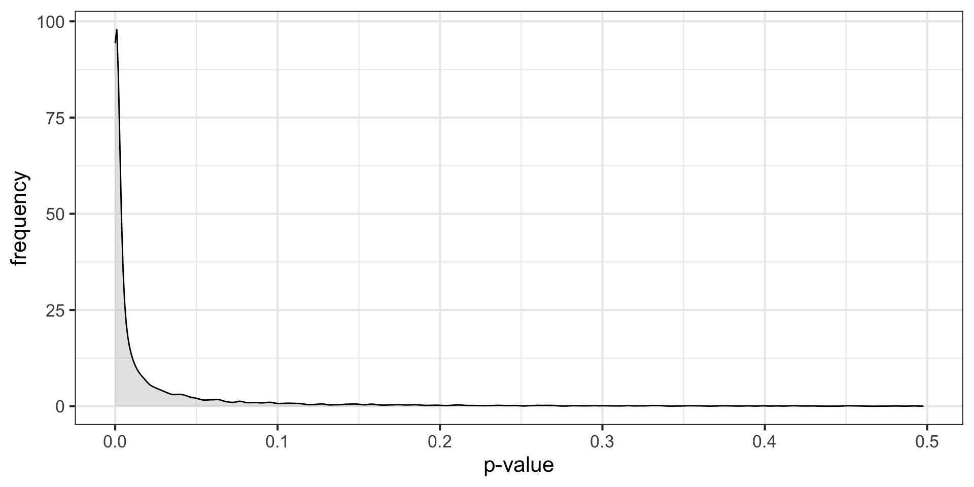 labs(x = "p-value", y = "frequency",