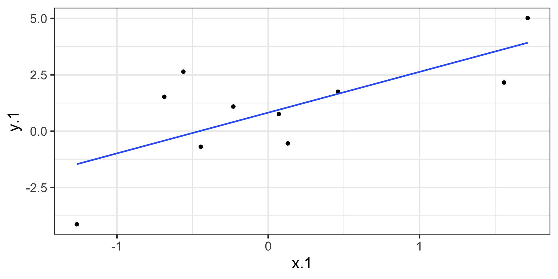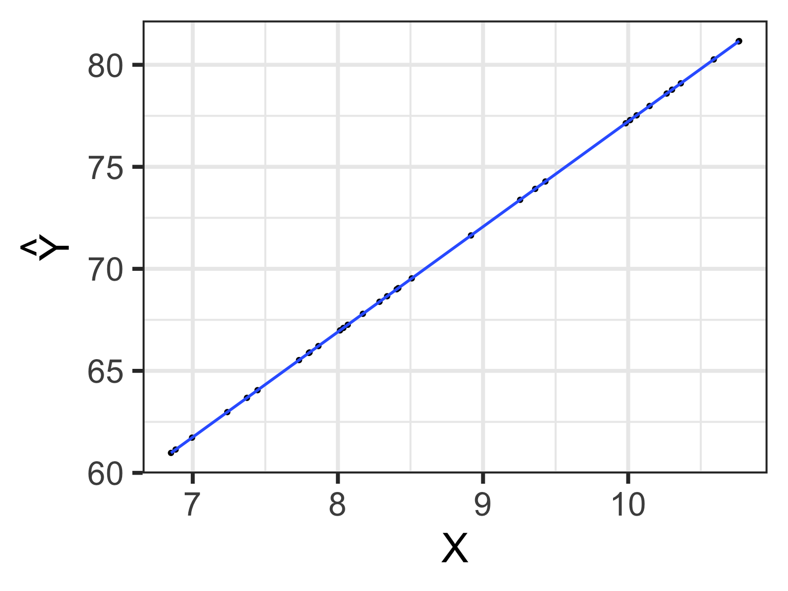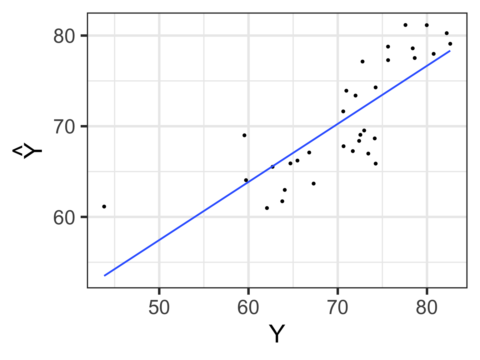 \[\hat{Y_i} = \bar{Y} + r_{xy} \frac{s_{y}}{s_{x}}(X_i-\bar{X})\]