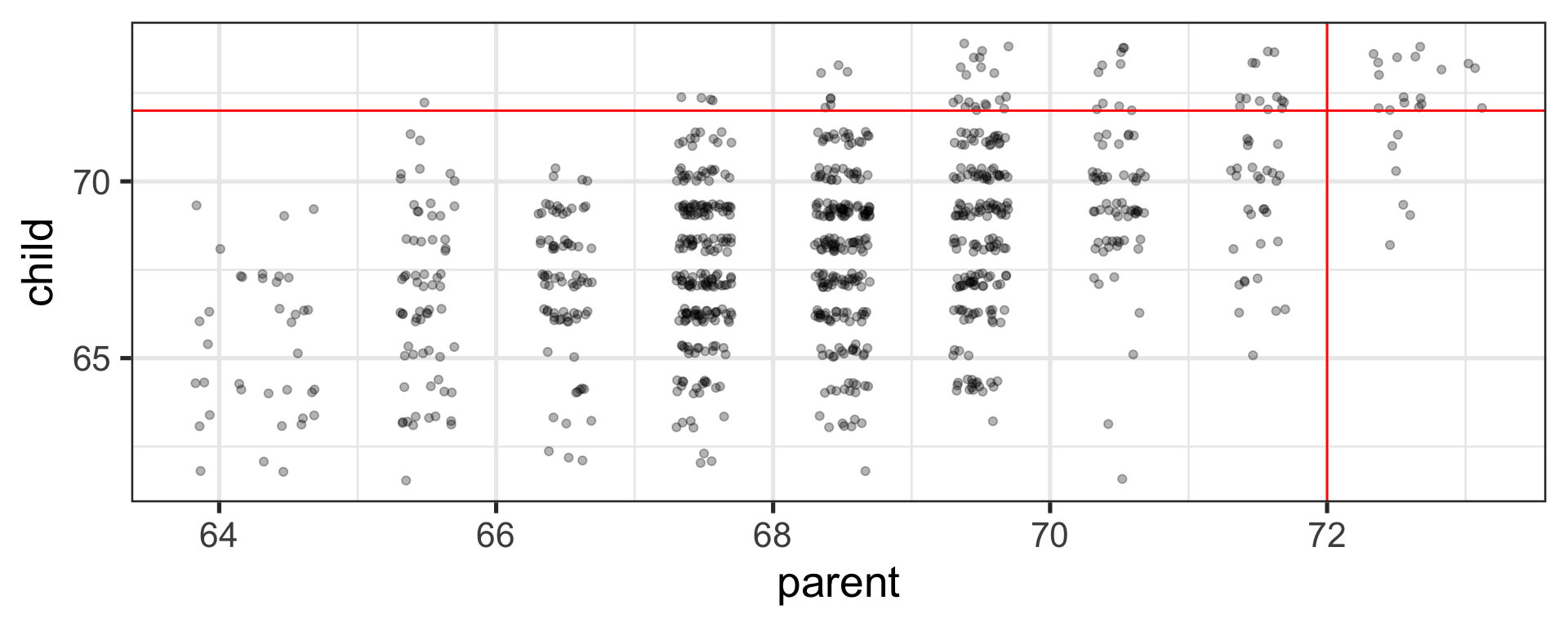 An observation about heights was part of the motivation to develop the regression equation: If you selected a parent who was exceptionally tall (or short), their child was almost always not as tall (or as short).