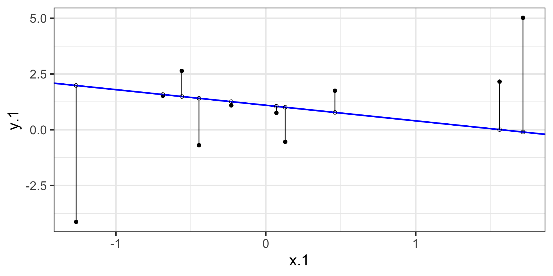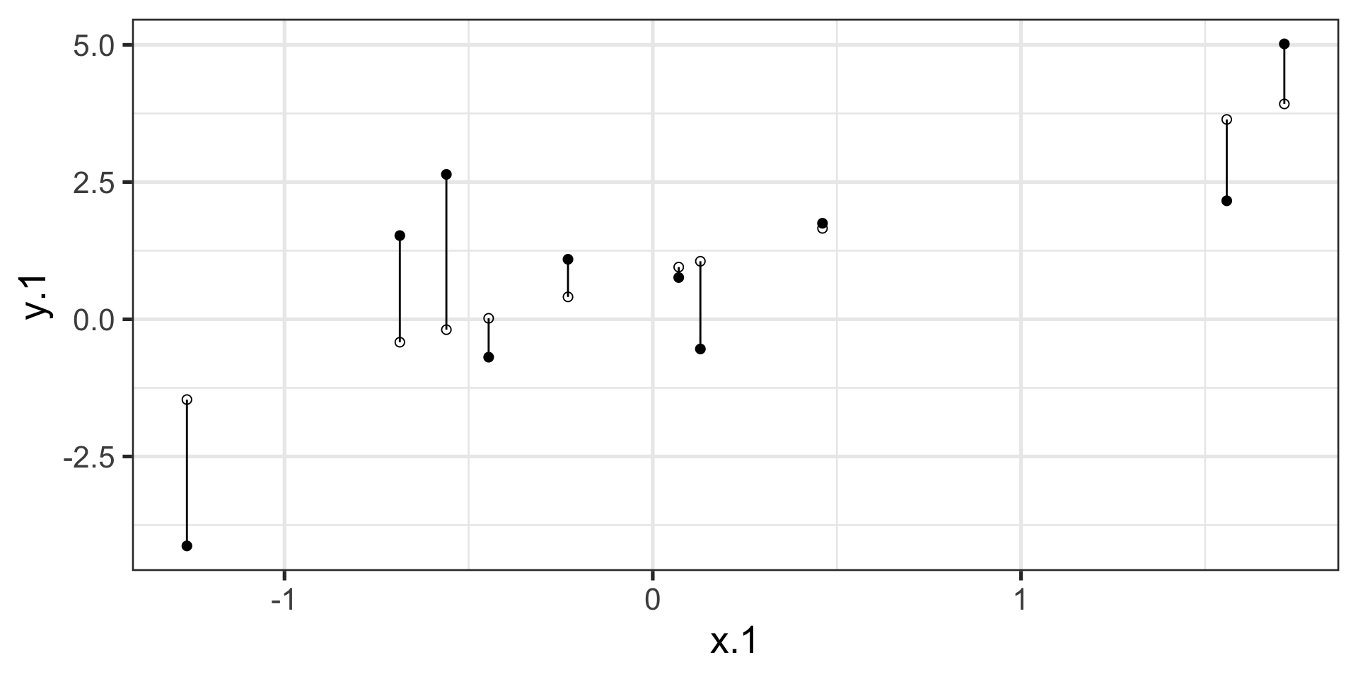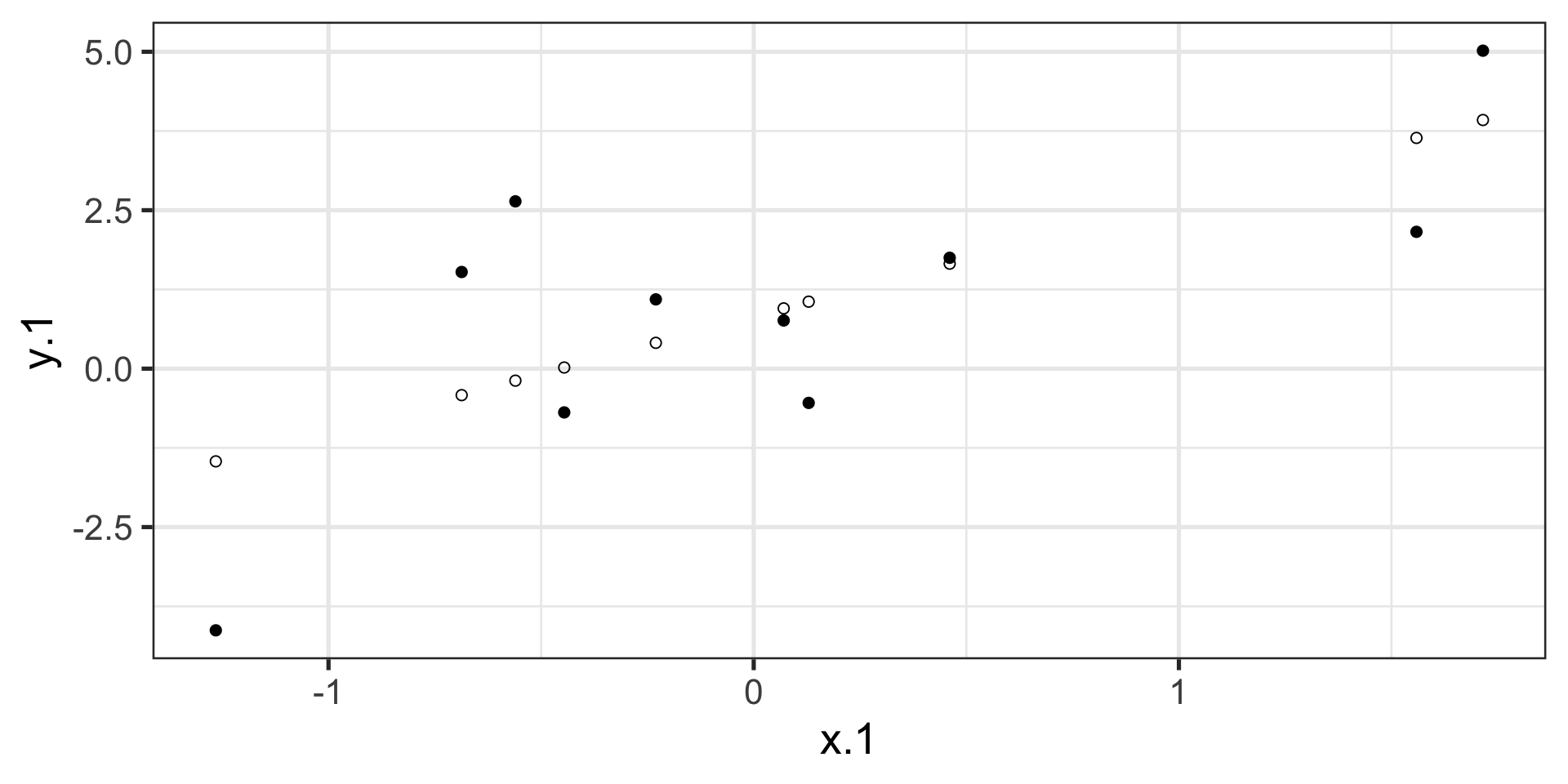 theme_bw(base_size = 20)This phenomenon is known as regression to the mean. This describes the phenomenon in which an random variable produces an extreme score on a first measurement, but a lower score on a second measurement.