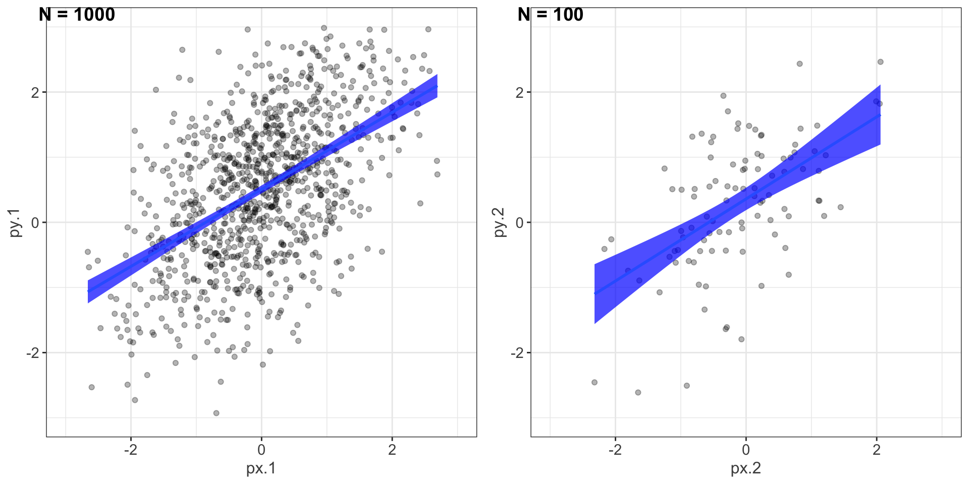 theme_bw()Let’s return to the idea of the uncertainty around our slope and intercept estimates.