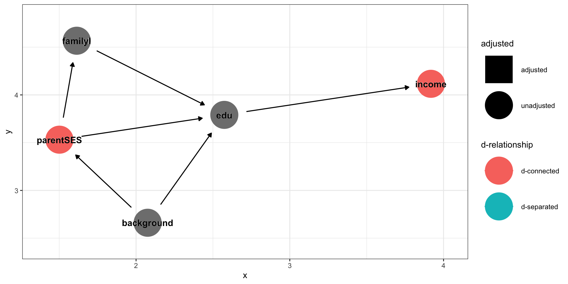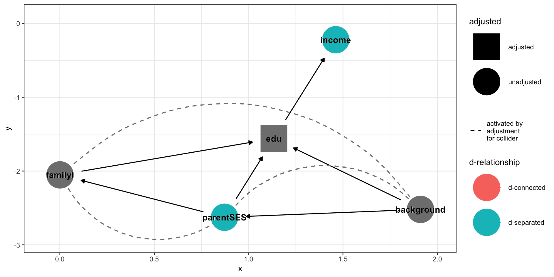 DAG models are most useful for psychological scientists thinking about which variables to include in a regression model. Recall that one of the uses of regression is to statistically control for variables when estimating the relationship between an X and Y in our research question. Which variables should we be statistically controlling for?