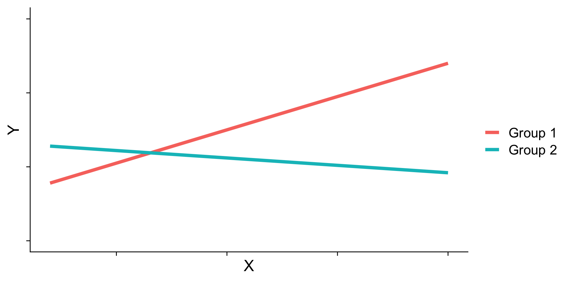 cowplot::theme_cowplot()When we have two variables, A and B, in a regression model, we are testing whether these variables have additive effects on our outcome, Y. That is, the effect of A on Y is constant over all values of B.