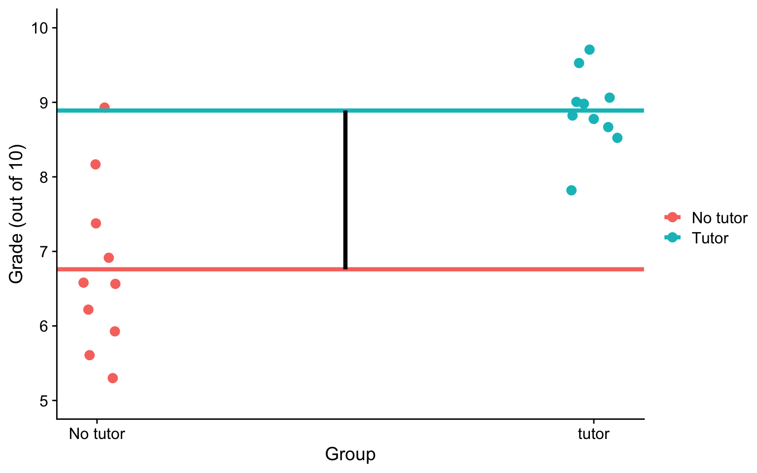 labs(x = "Group", y = "Grade (out of 10)", color = "") +