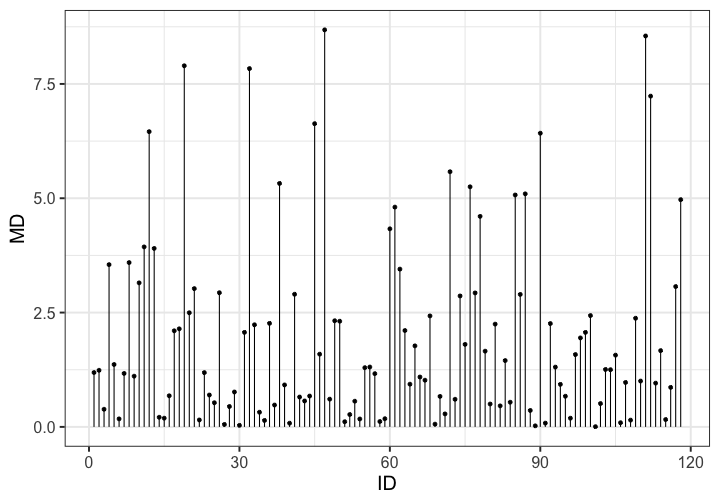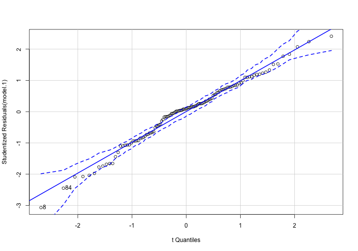 class: center, middle, inverse, title-slide # Assumptions and Diagnostics --- ## Today * Assumptions of GLM regression models * Diagnostics * Screening your data * Outliers --- ## BLUE Best Linear Unbiased Estimate of beta `\((\beta)\)` -- * Unbiased * Efficient * Consistent ??? Unbiased: what does it mean for an estimate to be biased? How did we describe the bias of variance? Efficient: smallest standard error (best) Consistent: as N increases, standard error decreases --- ## Assumptions of the regression model 1. No measurement error 2. Correctly specified form 3. No omitted variables 4. Homoscedasticity 5. Independence among the residuals 6. Normally distributed residuals --- ```r library(here) a_data <- read.csv(here("data/anxiety.csv")) library(broom) model.1 <- lm(Anxiety ~ Support, a_data) aug_1<- augment(model.1) aug_1 ``` ``` ## # A tibble: 118 x 8 ## Anxiety Support .fitted .resid .std.resid .hat .sigma .cooksd ## <dbl> <dbl> <dbl> <dbl> <dbl> <dbl> <dbl> <dbl> ## 1 10.2 6.16 8.68 1.51 0.725 0.0137 2.10 0.00366 ## 2 5.59 8.91 7.54 -1.95 -0.937 0.00850 2.09 0.00376 ## 3 6.58 10.5 6.86 -0.278 -0.134 0.0111 2.10 0.000100 ## 4 8.95 11.5 6.48 2.47 1.19 0.0144 2.09 0.0103 ## 5 7.60 5.55 8.93 -1.33 -0.642 0.0165 2.10 0.00346 ## 6 8.16 7.51 8.12 0.0368 0.0177 0.00966 2.10 0.00000153 ## 7 9.08 8.56 7.69 1.39 0.669 0.00850 2.10 0.00192 ## 8 3.41 4.1 9.53 -6.12 -2.96 0.0255 2.02 0.115 ## 9 8.66 5.39 9.00 -0.340 -0.164 0.0173 2.10 0.000237 ## 10 4.85 13.9 5.47 -0.620 -0.301 0.0299 2.10 0.00139 ## # … with 108 more rows ``` --- ## Residuals Residuals are your best diagnostic tool for assessing your regression model. Not only can they tell you if you've violated assumptions, but they can point to specific cases that contribute to the violations. This may help you to: * Notice patterns, which may lead you to change your theory * Remove problematic cases * Improve your research design --- <!-- --> --- <!-- --> We can add stress to the model to see how this changes --- ## 1) Measurement Error No measurement error in our independent variables * How does measurement error affect our coefficient estimates? * How does measurement error affect our the standard errors of the coefficients? * How can we check this assumption? ??? If there is measurement error, our coefficient estimates will always UNDERestimate the true parameter. This is because `$$r_{XY} = \rho\sqrt{r_{XX}r_{YY}}$$` Measurement error inflates our standard errors, because they add error There is ALWAYS measurement error. What do we do about this? --- ## 2) Form Assumption 2: Correctly specified form <!-- --> ??? Underestimates `\(R^2\)` --- ## 3) Model Assumption 3: Correctly specified model - This is especially important for multiple regression. - Two problems: 1. "Over control" and your coefficient is no longer interpretable 2. "Under control" and your coefficient is no longer interpretable --- ## 3) Model ### Correctly specified model Cohen and Cohen (1983) discuss several problems associated with the inclusion of covariates/multiple independent predictors in a model. Those problems were: 1. Computational accuracy * not a problem now, because computers 2. Sampling stability (tolerance) 3. Interpretation --- ## 3) Model ### Correctly specified model: Tolerance Recall that, computationally, including multiple predictors in your model requires adjusting for the overlap in these predictors. `$$\large se_{b} = \frac{s_{Y}}{s_{X}}\sqrt{\frac {1-R_{Y\hat{Y}}^2}{n-p-1}}\sqrt{\frac{1}{1-R_{12}^2}}$$` (in a two-predictor regression) Tolerance is: `$$\large 1-R_{12}^2$$` --- ## 3) Model ### Correctly specified model: Tolerance If your two independent predictors are highly correlated, tolerance gets smaller. * As tolerance gets smaller, the standard error gets larger. This is referred to as variance inflation. The **variance inflation factor** is an index to assess this problem. `$$\text{VIF} = \frac{1}{\text{Tolerance}} = \frac{1}{1-R^2_{12}}$$` * As the standard error becomes larger, the confidence intervals around coefficients becomes larger. When confidence intervals around estimates are large, then we say the partial coefficient estimates are *unstable.* --- ## 3) Model ### Tolerance VIF is not bounded, but generally large numbers (greater than 5 or 10, based on who's giving you the heuristic) indicates a problem. ```r library(car) vif(model.2) ``` ``` ## Support Stress ## 1.378785 1.378785 ``` The lesson from tolerance is that, as you add predictors to your model, it is best to select predictors that are not correlated with each other. What about (3) Interpretation? --- ## 3) Model ### Lynam et al (2006) Main takeaways: * Partialling changes the meaning and interpretation of a variable. * Partialling only takes variance away from the reliable `\((r_{XX})\)` part of a measurement. * Nothing is a good substitute for good theory and reliable measurement. * Always present zero-order correlations. ??? * It is difficult to know what construct an independent variable represents once the shared variance with other constructs has been removed * PARTIALLING CHANGES VARIABLES * Partialling only comes from the reliable part of the measurement -- if a scale has reliability .7 and correlates with another variable at .3, the partialling out the covariate removes .3 of the valid .7 variance or 9% out of 49% * Heterogeneous measures run the risk of greater dissimilarity following partialling. Empirical work: ~ 700 male inmates completed PCL-R assess psychopathy (interview coding) APSD (self-report) PRAQ proactive and reactive aggression EPQ PPI also psychopathy - partialling out sub-scales -- some correlations are even negative Good statistics cannot overcome poor measurement and bad theory - always present --- ## 3) Model ### Endogeniety 2. "Under control" and your coefficient is no longer interpretable **Endogeniety** is when your your error term is associated with an IV. - Typically when you leave out an important IV. ??? Underestimates `\(R^2\)` --