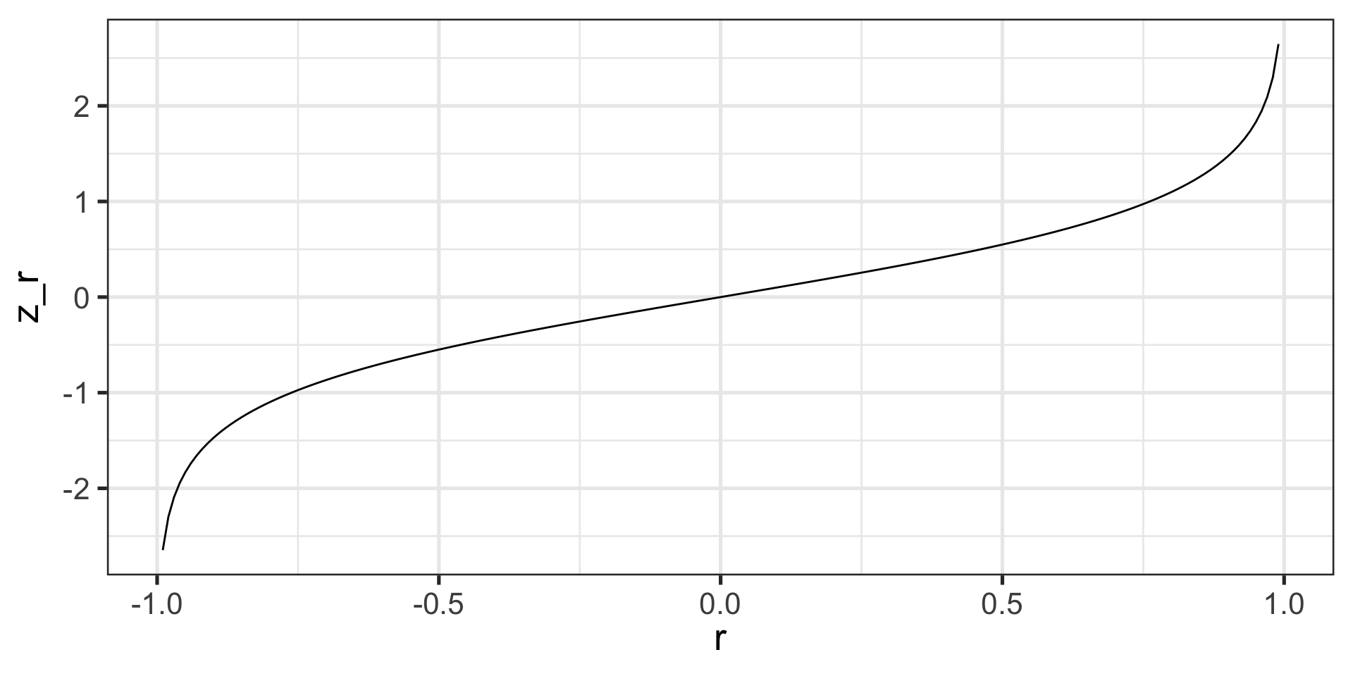 These formulas are easy to mistype in R – use the psych package and its functions fisherz() and fisherz2r() to save time and reduce human error.
