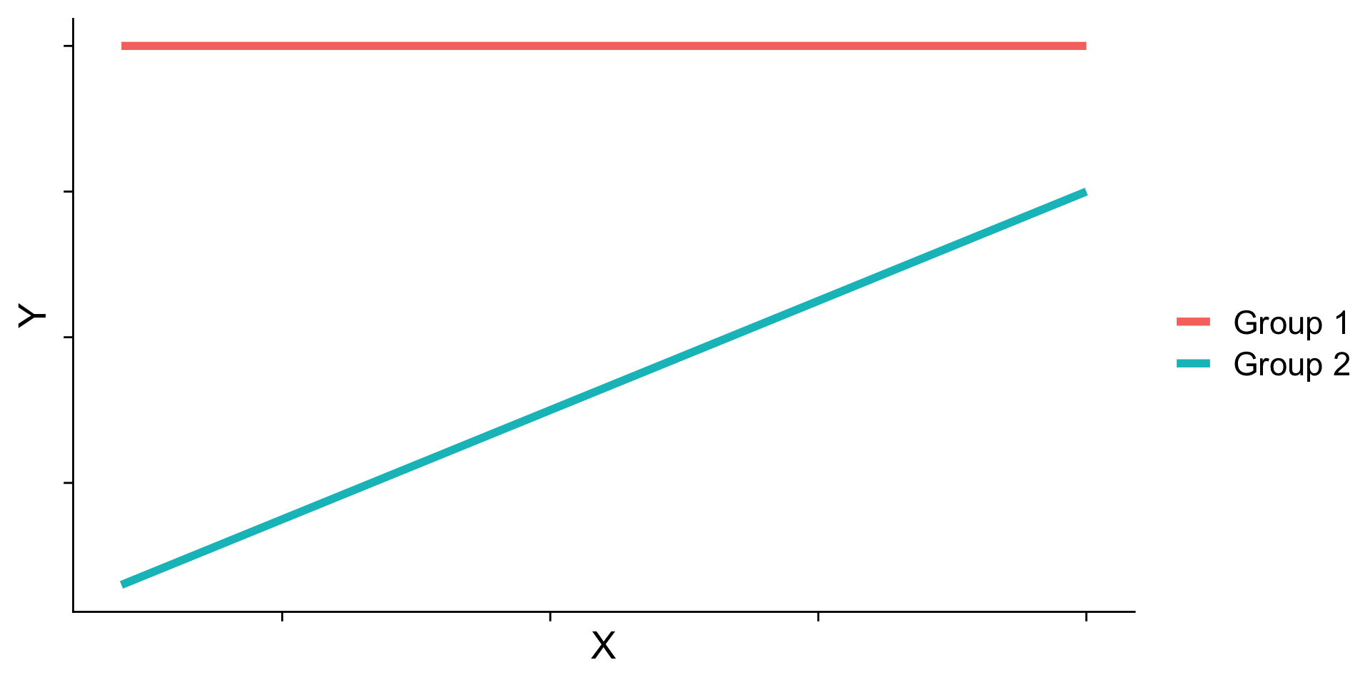 cowplot::theme_cowplot()When we have two variables, A and B, in a regression model, we are testing whether these variables have additive effects on our outcome, Y. That is, the effect of A on Y is constant over all values of B.
