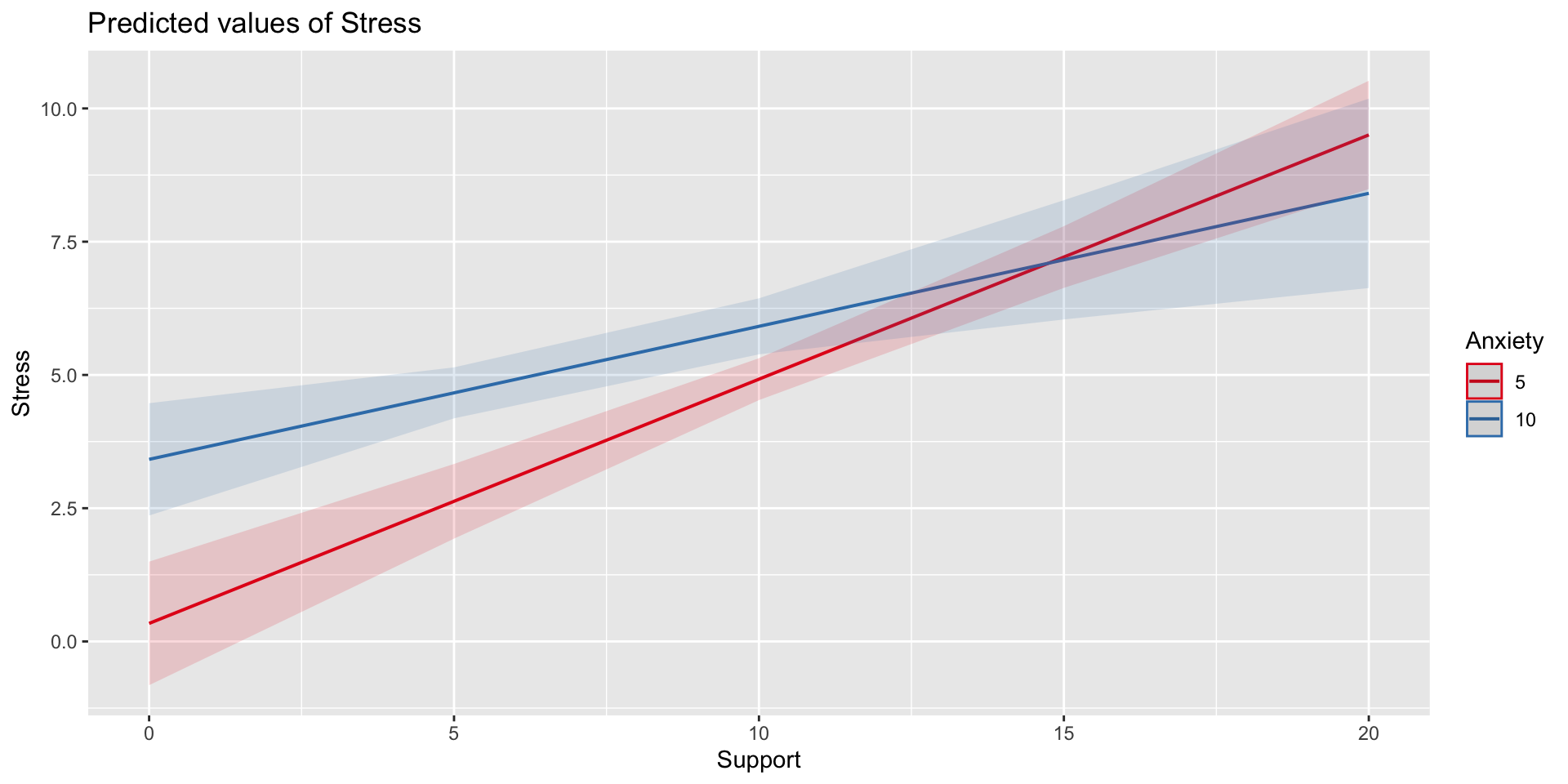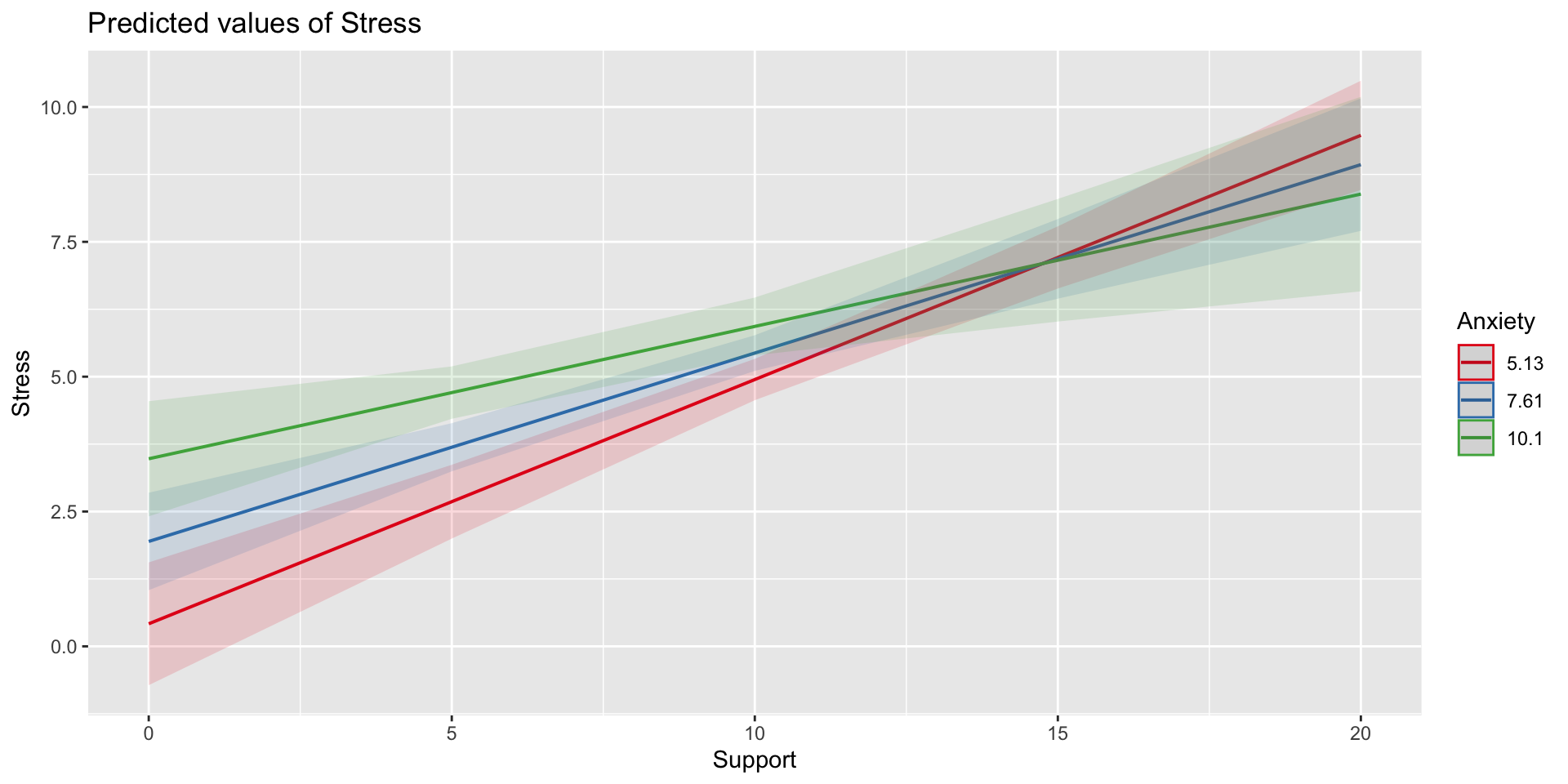 lm(formula = Stress ~ Anxiety * Support, data = stress.data)